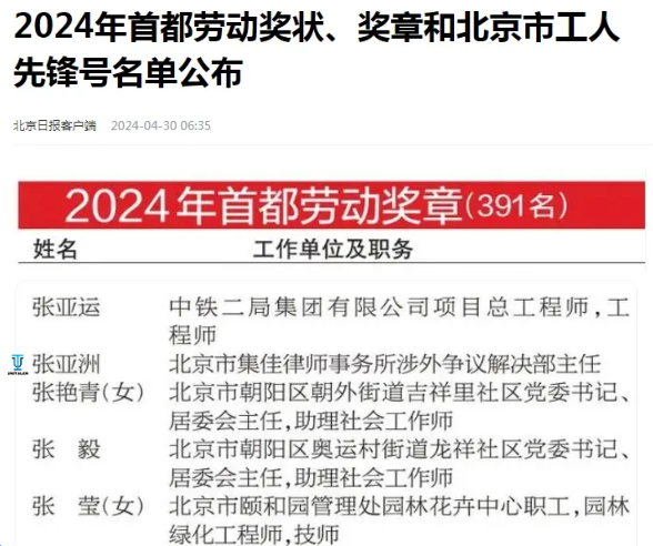 >鲸鱼体育>新闻动态>集佳合伙人张亚洲律师荣获2024年首都劳动奖章