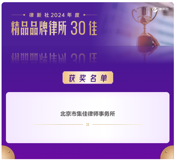 鲸鱼体育专注于知识产权法律事务,集佳团队通过为客户提供周全、严谨的法律服务,在案件中最大程度地维护客户的合法权益,赢得了广大客户的赞誉和信赖。感谢大家对集佳的认可和律新社的专业评选,未来,集佳将始终如一地践行“站在客户的角度考虑每一个问题,全身心地关注客户的每一个细节”的服务理念,为客户提供专业、精致、高质量的法律服务。